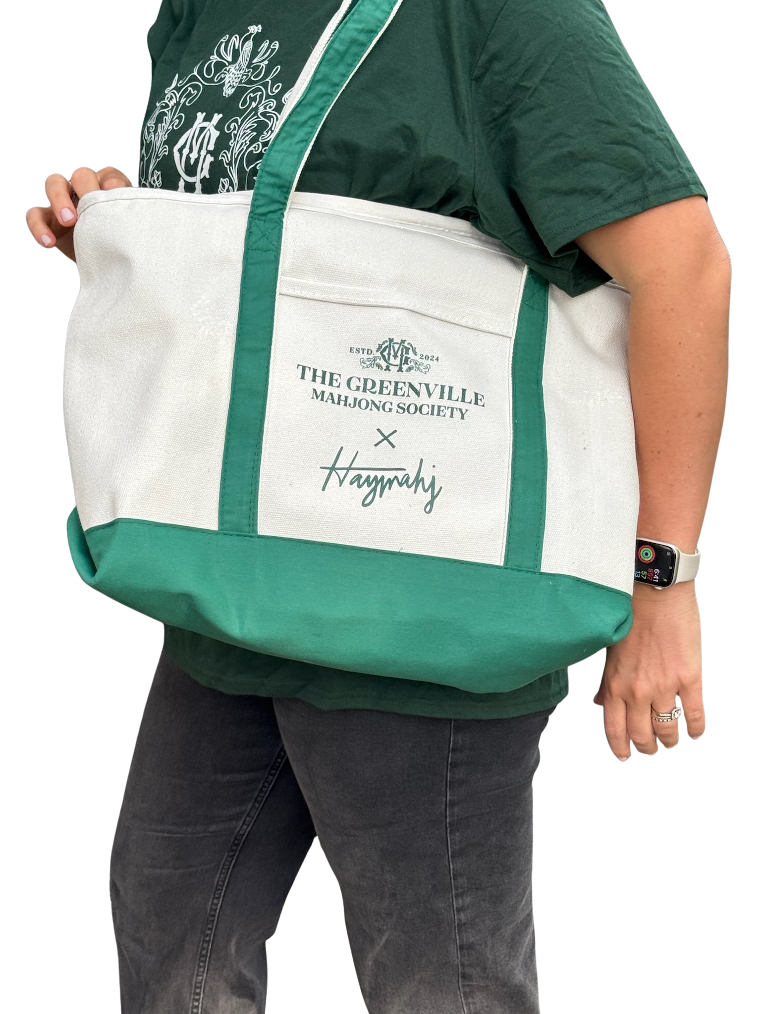 HayMahj Merch Greenville Mahjong Society Canvas Tote $70.00 Greenville Mahjong Society Crest Green Tshirt $40.00 Greenville Mahjong Society White Tshirt $40.00 Greenville Mahjong Society Black Quarter Zip $80.00 Greenville Mahjong Society White Dad Hat $35.00 HayMahj Tile Bags $35.00 HayMahj Signature Mahjong 3D Printed Tile Set in HayMahj White Sale Price: $175.00 Original Price: $200.00 Sale The HayMahj Charleston Dance Partner $20.00 HayMahj Classic Quarter Zip in Summer Weight Sale Price: $56.00 Original Price: $80.00 Sale HayMahj College Martini Glass Crewneck Sweatshirt $60.00 HayMahj Classic Dad Hat $35.00 HayMahj Comfort Colors Whiskey Tee $40.00 HayMahj for a Cause Tournament Tee $15.00 Canvas HayMahj X TGMS Bag $65.00 National Mah Jongg League Card from $19.00